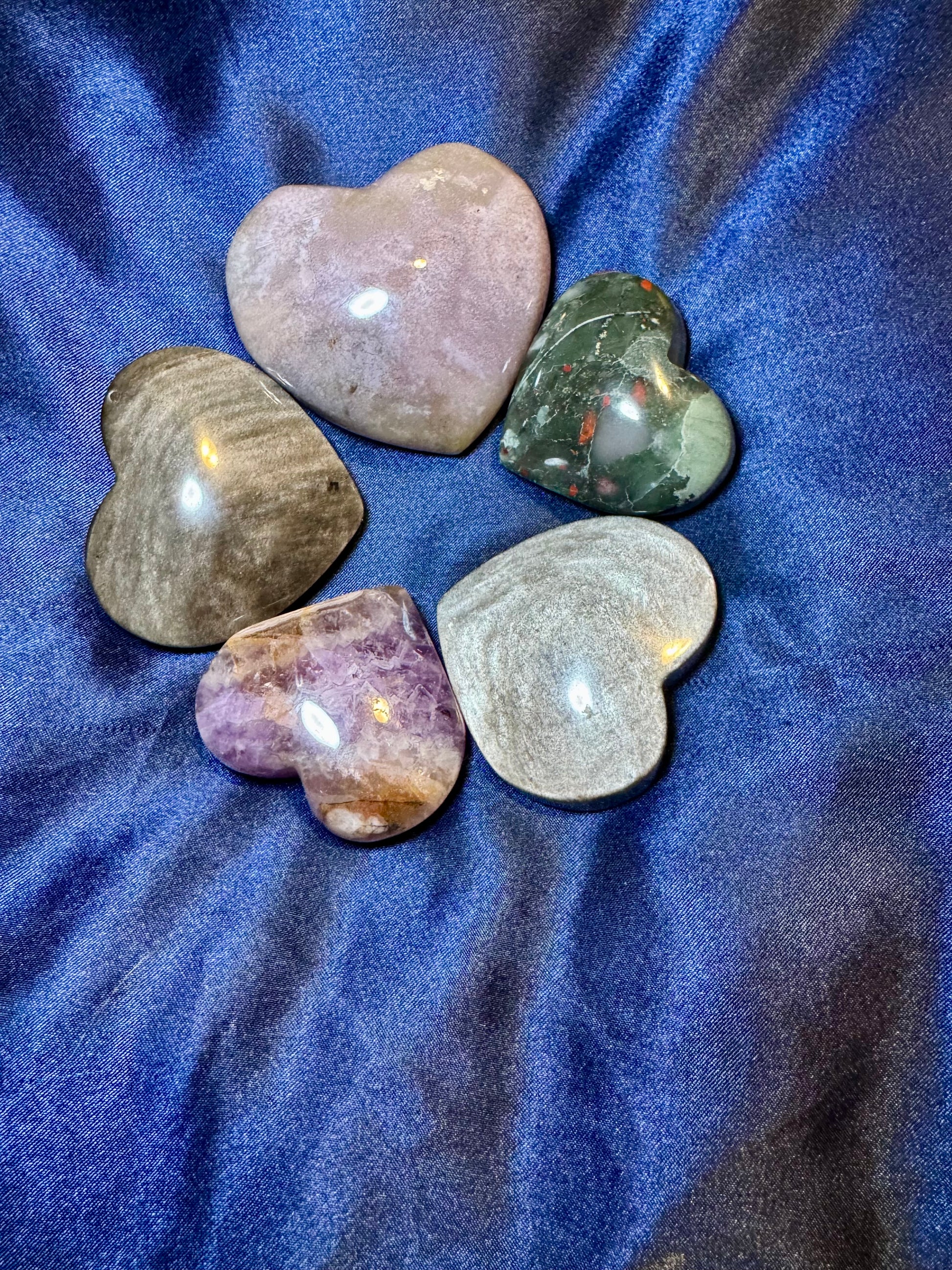 Heart Stone Amethyst / Silver Obsidian / African Blood