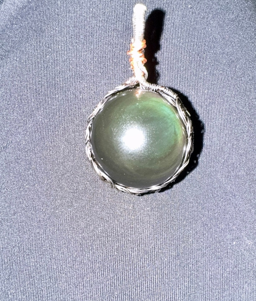 Rainbow Obsidian Wire Pendant
